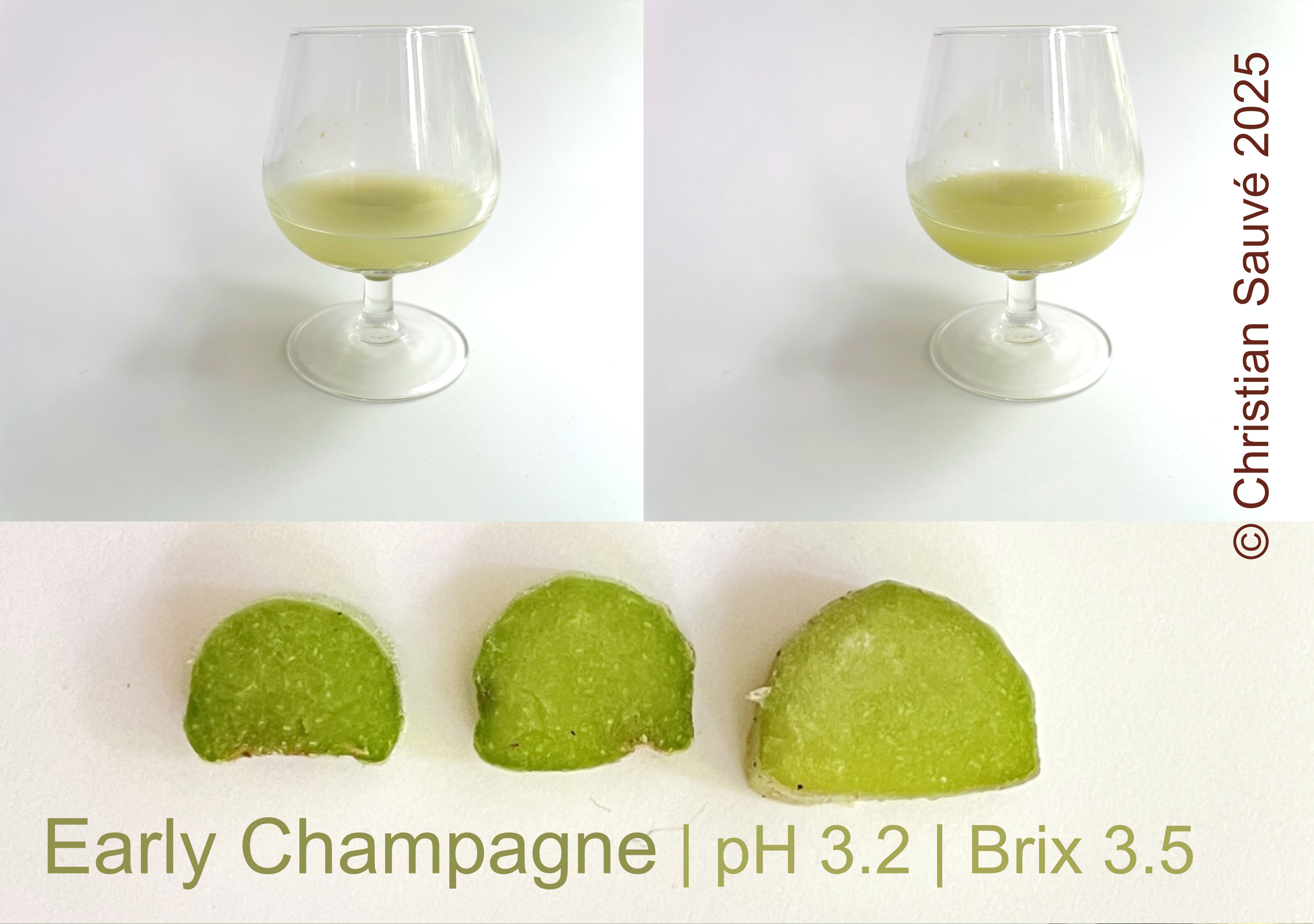 Il s'agit d'une variété anglaise d'avant les années 1860, avec des feuilles fantaisistes très ébouriffées et des tiges fines et vert pâle de la couleur des groseilles non mûres, utilisées à l'origine pour le vin mousseux à la rhubarbe. Très productives sur une longue saison, dormant plus tard que les autres variétés.