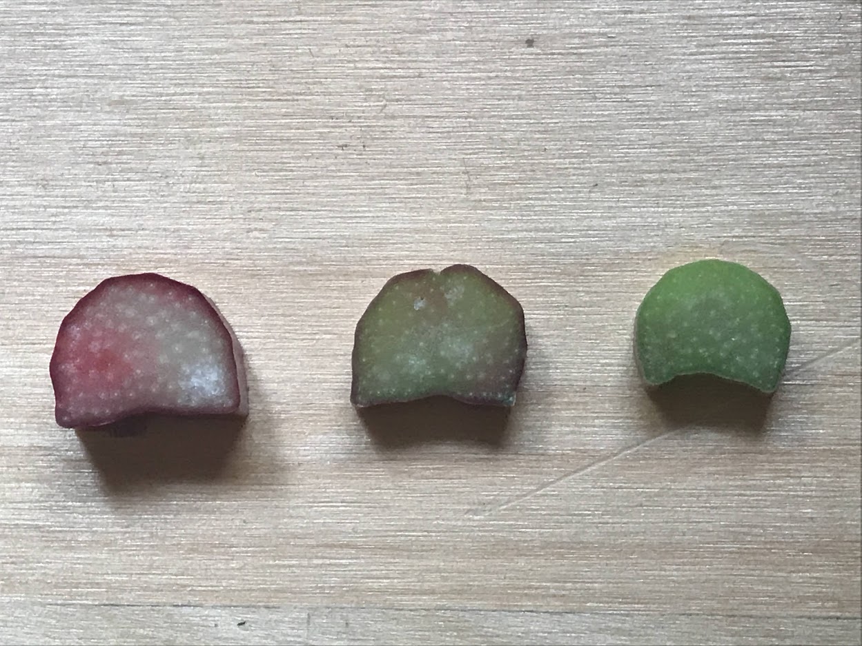 Couleur pétiole : Rose vif à rouge vif parfois un peu de vert