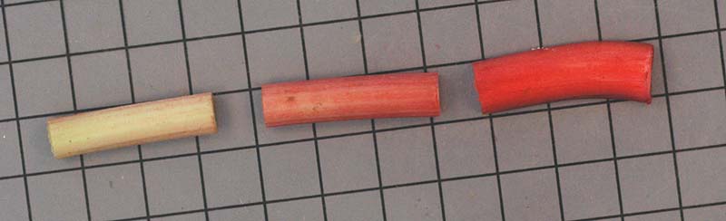 1974 — Varieties for outdoor use that have red stalks are Crimson Wine, Valentine, McDonald, and Ruby. Crimson Wine produces larger stalks than the other three red stalk varieties. It also yields larger stalks than the forcing varieties that usually produce green stalks when grown outdoors.