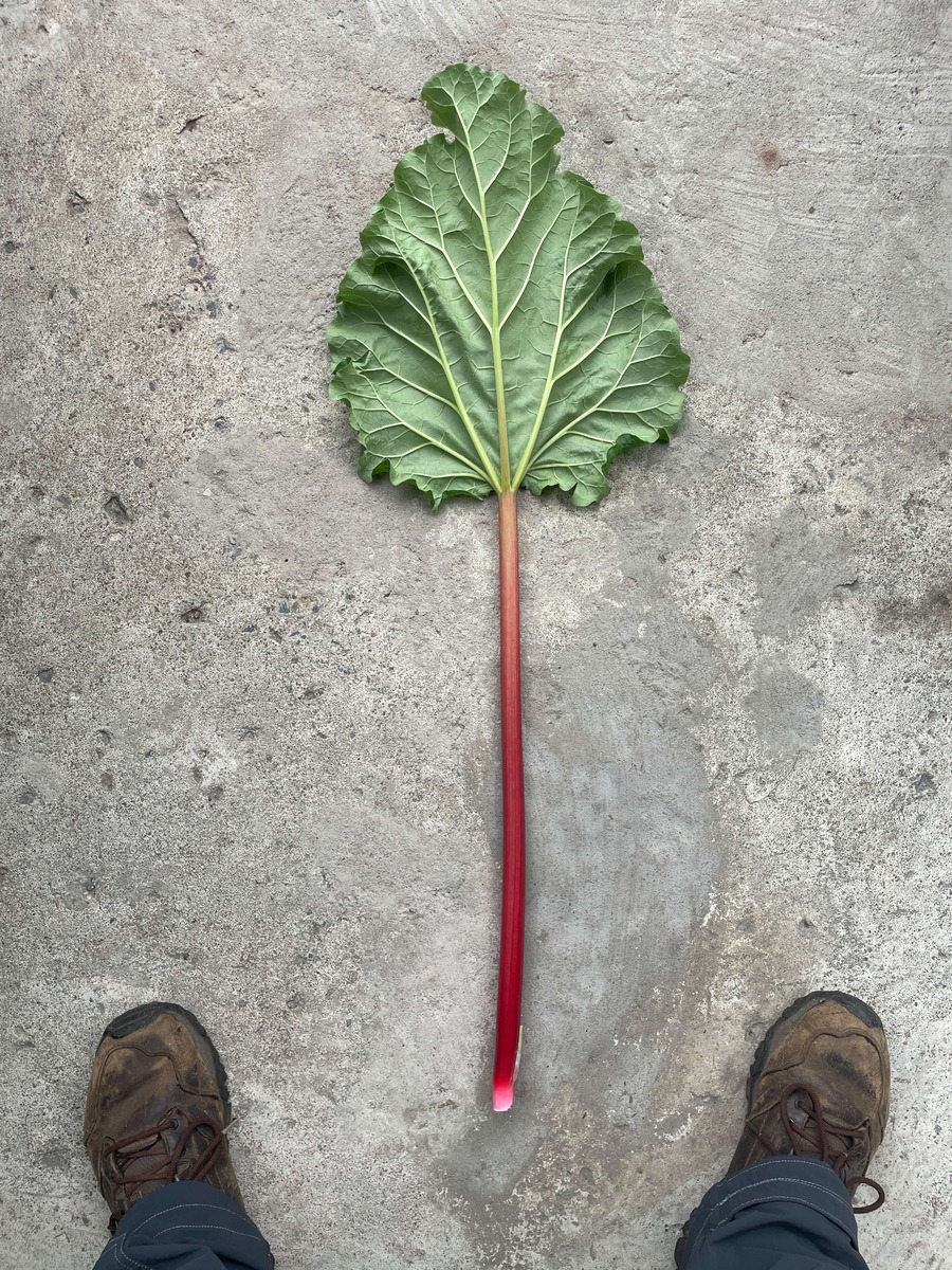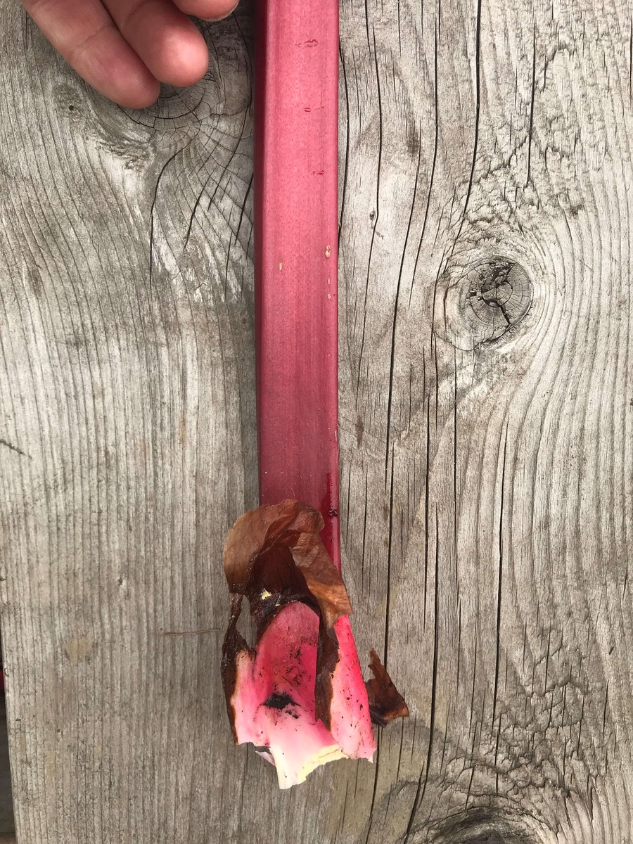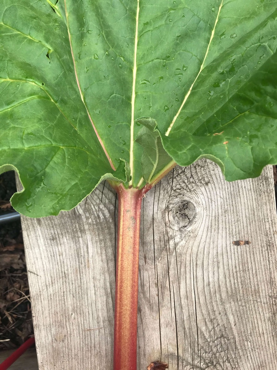 Pétioles verts, semblables à Victoria mais légèrement plus vigoureux et de couleur plus intense, généralement avec une moucheture rose plus foncée sur une tige verte. Très forte tiges approprié pour jus et la vinification.