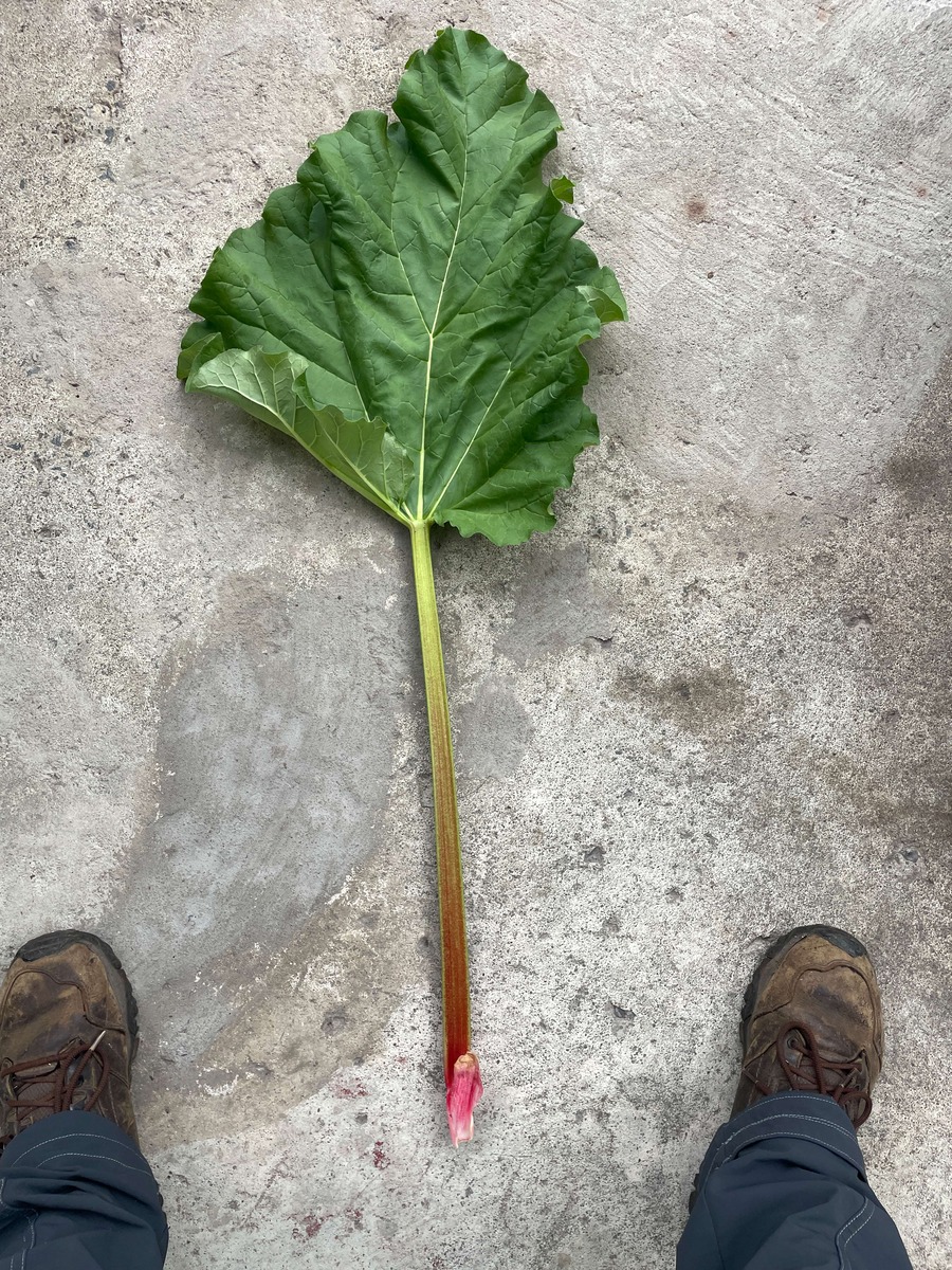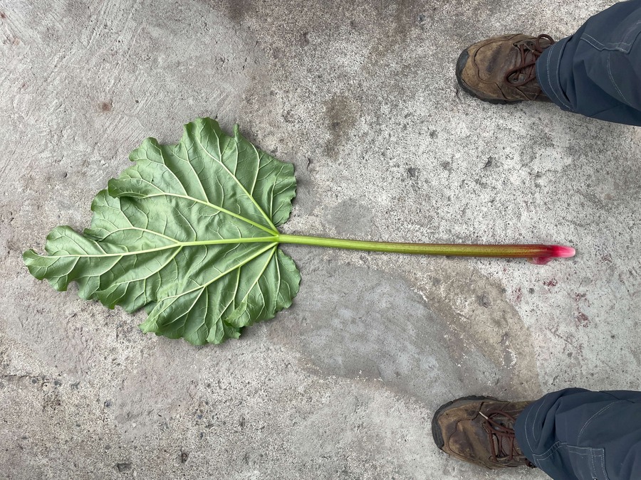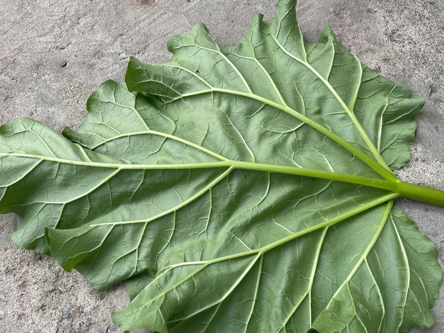 Rhubarb Holsteiner Blut est une variété vigoureuse avec de longues tiges et une chair rouge foncé en raison d'une forte teneur en anthocyane.