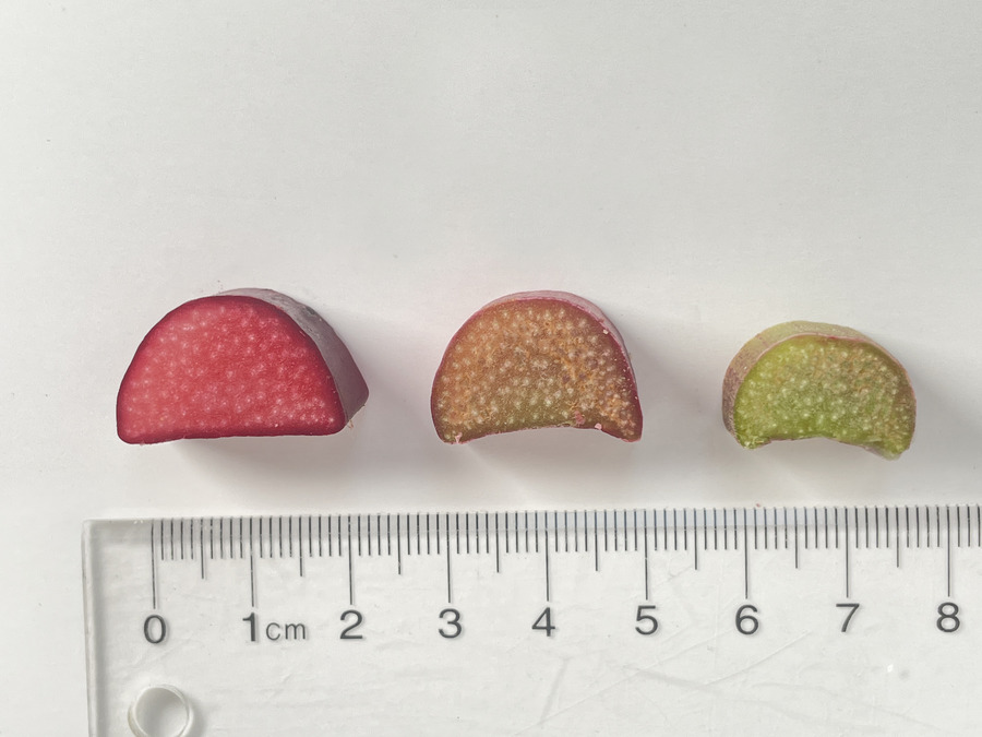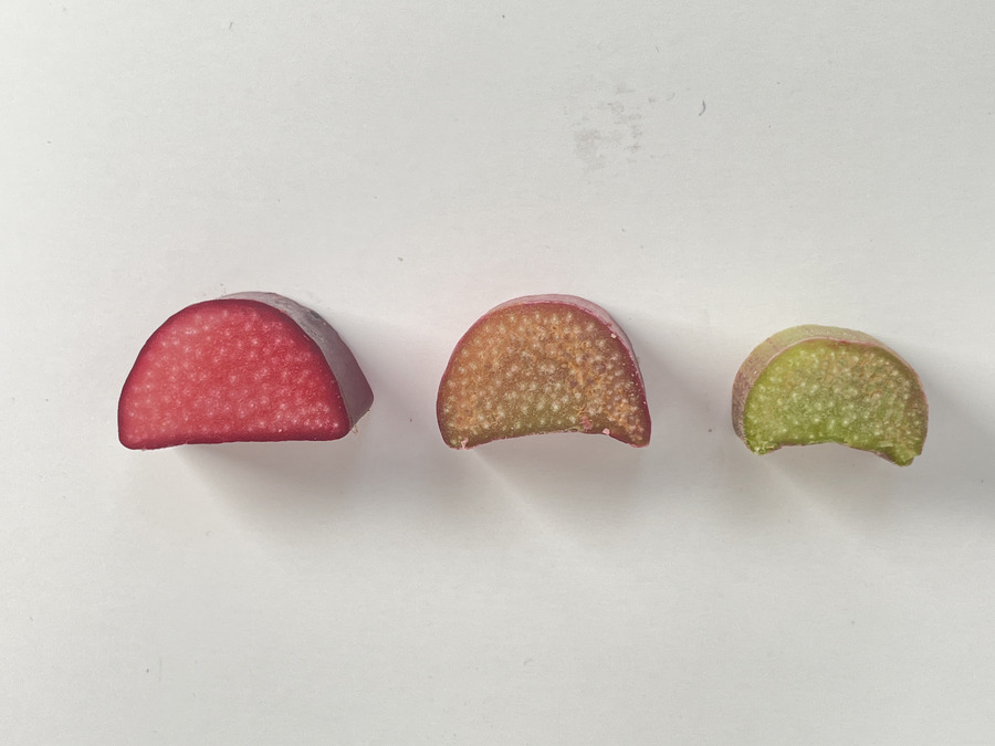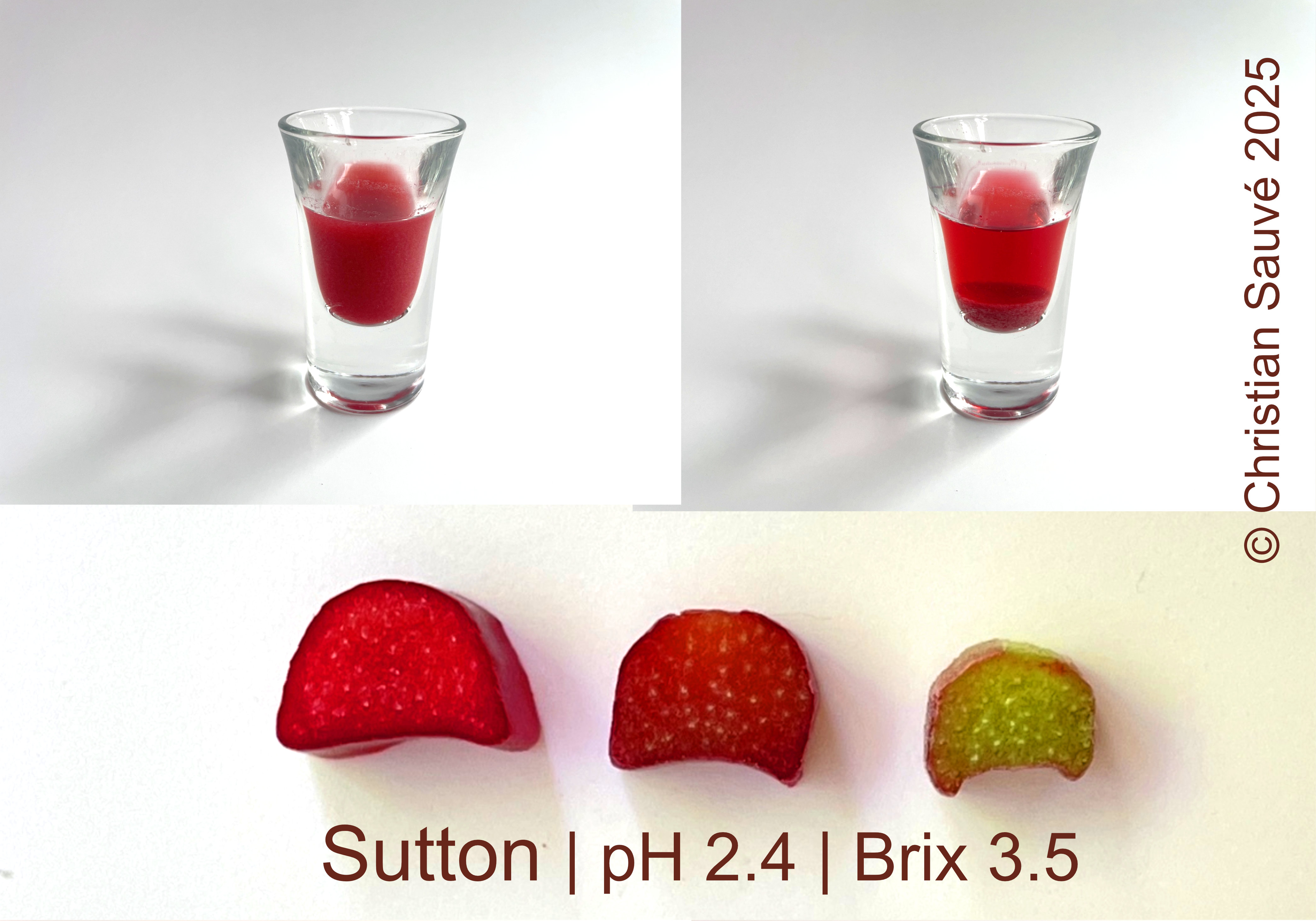 Cette variété n’est pas toujours apprécié pour son apparence striée de vert et de rouge. Cependant, cette variété de rhubarbe est parfumée, tendre et légèrement sucrée.