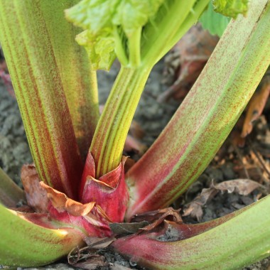 Âge de la plante et stress environnemental : À mesure qu'un plant de rhubarbe mûrit (généralement après quelques années), elle peut subir un stress dû à la surpopulation ou à un manque de nutriments ou d'eauo ou si elle n'est pas correctement divisée et fertilisée. Ce stress peut parfois entraîner une modification de la couleur des tiges, bien que les tiges plus rouges ne soient pas systématiquement plus rouges chez les plantes plus âgées. Dans certains cas, le stress peut même entraîner une coloration moins intense.