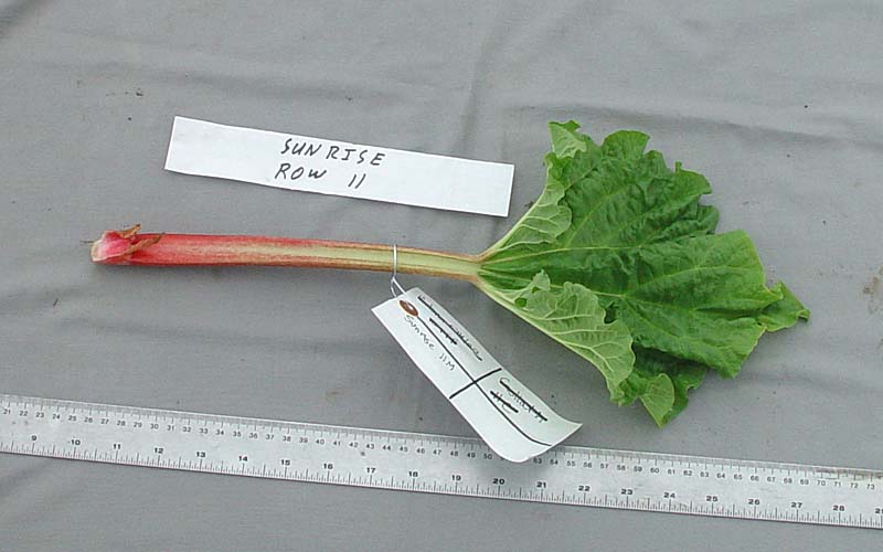 Premièrement l'identification des cultivars de rhubarbe est au mieux problématique et très souvent peu fiable. La plupart des producteurs de rhubarbe nomment leurs plantes soit en fonction des caractéristiques générales qu'elles présentent, soit pour l'attrait commercial du nom. Peu de producteurs, voire aucun, peuvent retracer l'origine du matériel génétique avec certitude. Cela pour plusieurs bonnes raisons. Tout d'abord, il existe 60 à 100 variétés connues de rhubarbe et il n'existe aucune clé permettant d'identifier les variétés. La situation est compliquée par le fait que certains vendeurs proposent des plantes et des racines germées à partir de semences, souvent sans en informer leurs clients. Ces plantes représentent normalement une nouvelle variété hybride et peuvent ne pas avoir beaucoup de ressemblance avec leurs plantes mères. Le fait que les variétés individuelles changent de caractéristiques à la fois pendant les phases de croissance annuelle et à mesure qu'elles vieillissent au fil des ans est encore pire. Il est très difficile d'identifier une variété avec certitude. Nous faisons tous de notre mieux. Cependant, il est préférable de se fier à la description des caractéristiques des variétés plutôt qu'au nom qui lui est associé.